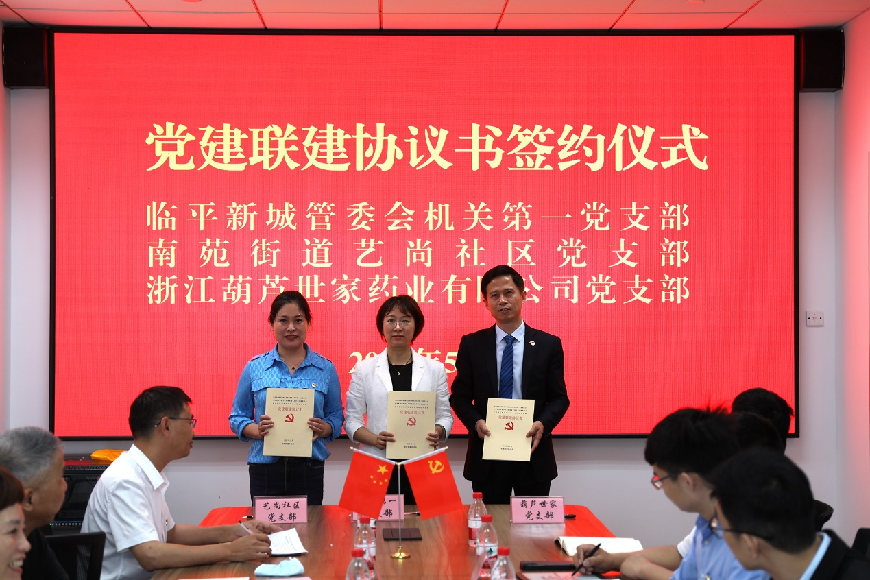 现场还举行了临平新城管委会机关党建联建共建启动仪式,机关第一党支部书记、财政国资处处长沈萌宣读《机关党建联建创建实施方案》,部署联建创建目标任务、分工举措及下一步工作计划。临平新城管委会机关第一党支部、南苑街道艺尚社区党支部、浙江葫芦世家党支部共同签署了党建联建协议书。